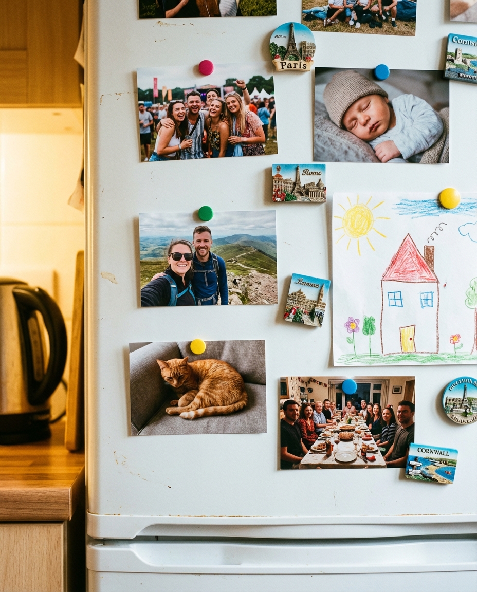 Fridge doors, bedside tables, grandparents' mantlepieces. Prints end up where phones never will.