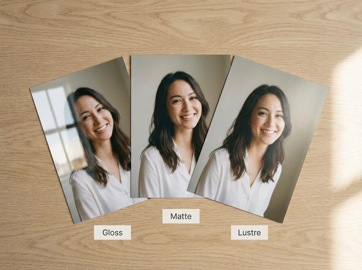 Pick the finish that suits the moment. Glossy for vibrant landscapes. Matte for portraits. Lustre for everything in between.